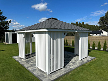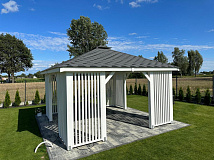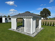 Все элементы постройки окрашиваются в 2 слоя с промежуточной и финишной шлифовкой. Стандартная краска Teknos Akrylin (цвет на выбор) по каталогу RAL Classic – более 1000 цветов. Масло, пропитка или другие производители красок – рассчитываются индивидуально
