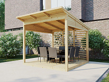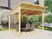 Все элементы постройки окрашиваются в 2 слоя с промежуточной и финишной шлифовкой. Стандартная краска Teknos Akrylin (цвет на выбор) по каталогу RAL Classic – более 1000 цветов. Масло, пропитка или другие производители красок – рассчитываются индивидуально