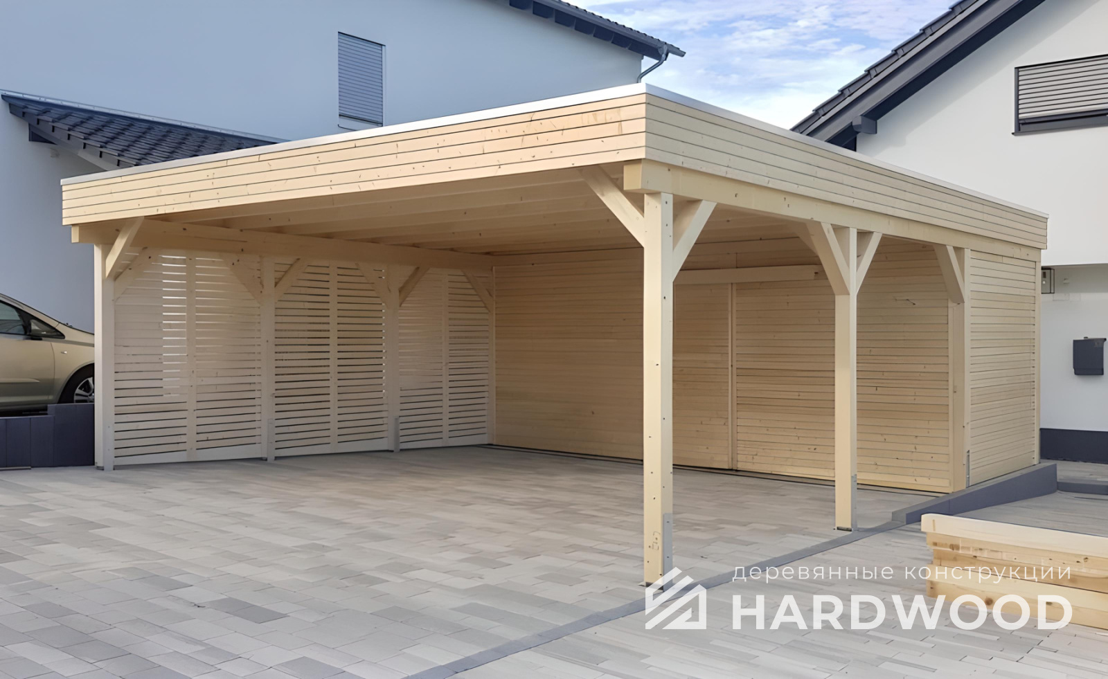 Деревянные навесы для автомобилей по акции