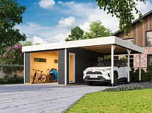 | Название модели: | Навес для авто из дерева с хозблоком №165 |