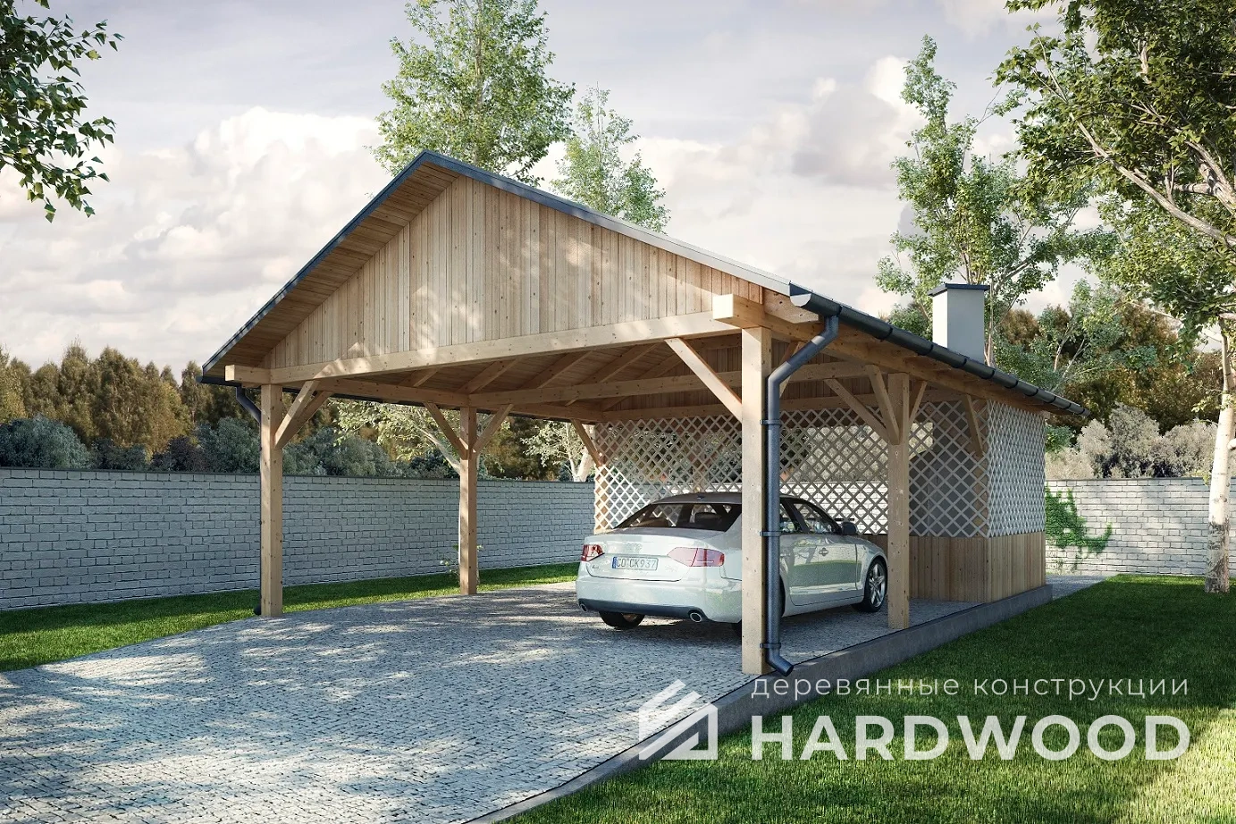 | Название модели: | Навес для двух машин с хозблоком №121 |